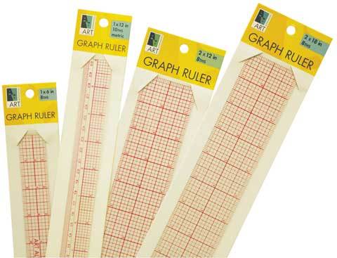 These light-weight, flexible, transparent plastic rulers feature red markings that are easy to read on both light and dark surfaces and have zero-centering scales. With the exception of the metric ruler, they all have a 1/8″ grid with a 1/16″ graduated edge. The metric ruler has a scale of inches divided in 10ths on one side and has centimeter and millimeter graduations on the other.