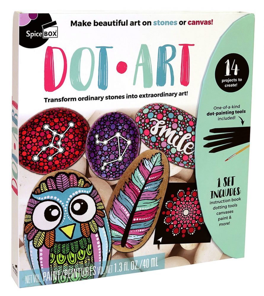 With a set of paints, unique dotting tools and easy to follow instructions, this kit has everything needed to create beautiful and unique works of art on river stones or mini canvases.