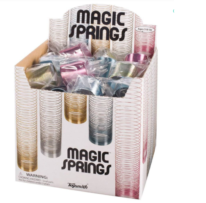 Bouncy, rolling metal spring. 1” unstretched. Assorted colors. 5yr+