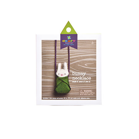 This bunny necklace features a pre-made bunny and the pieces needed to assemble a bunny necklace. Create the pouch quickly with our adhesive strips and put it on the cord. The kit includes one felt bunny and pouch, 30 of suede cord and 2 pieces of adhesive. Recommended for ages 5 and up. WARNING: CHOKING HAZARD – small parts. Not for children under 3 years old.