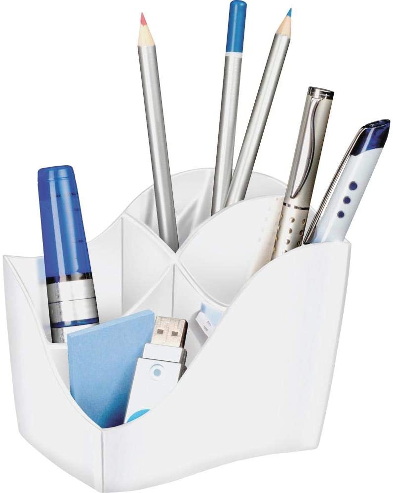 Ellypse desktop organizer features a four-compartment design to efficiently organize and arrange your frequently used office accessories. Its unique, curved construction provides easy access to a variety of items in different shapes and sizes. Shock-resistant polystyrene withstands minor mishaps and daily use for long-lasting organization. Desktop organizer is perfect for keeping pens, pencils, scissors, highlighters and more. Ellypse desktop organizer features a four-compartment design to efficiently organize and arrange your frequently used office accessories. Its unique, curved construction provides easy access to a variety of items in different shapes and sizes. Shock-resistant polystyrene withstands minor mishaps and daily use for long-lasting organization. Desktop organizer is perfect for keeping pens, pencils, scissors, highlighters and more. Product Information Item Capacity: 45 x Pen Total Number of Compartments: 4 Application/Usage: Office Supplies Physical Characteristics Color: White Material: Polystyrene Height: 3.9″ Width: 3.5″ Depth: 4.6″ Miscellaneous Recycled: No Recycled Content: 0% Post-consumer-waste%: 0% Assembly Required: No Country of Origin: France MaterialPolystyrene BrandCep Manufacturer Part NumberCEP1003400021 Assembled Product Weight0.24 lbs ColorWhite