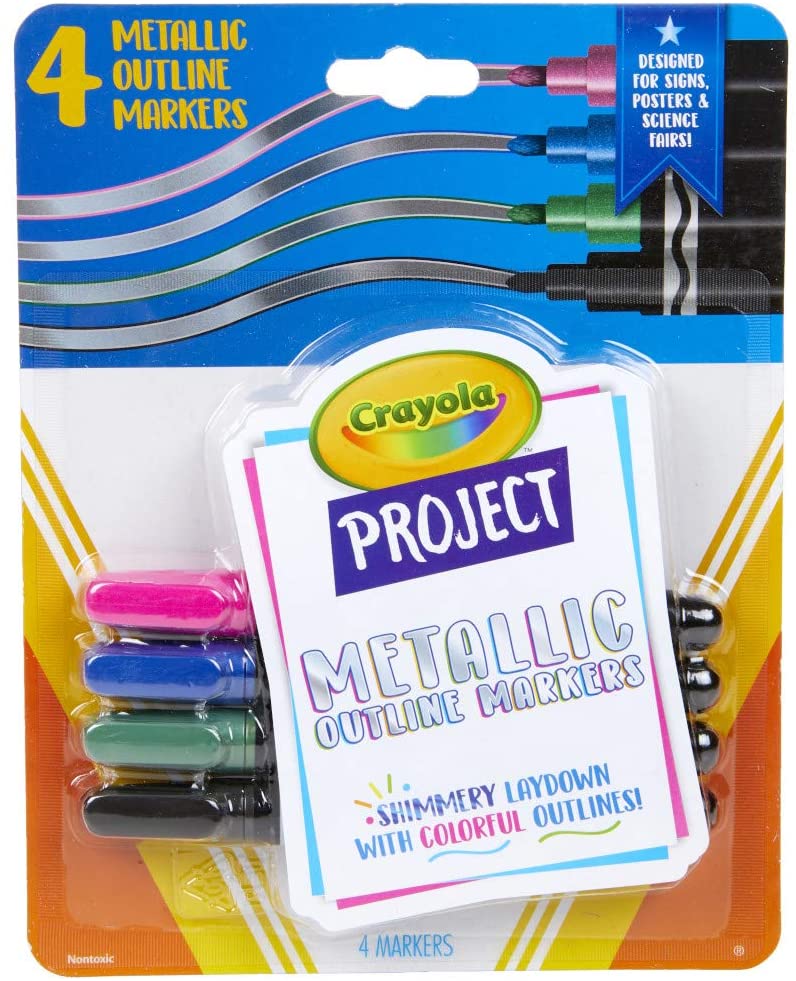 - CRAYOLA METALLIC MARKERS: Includes 4 metallic markers great for both light and dark surfaces, with varying outline effects on dark surfaces.