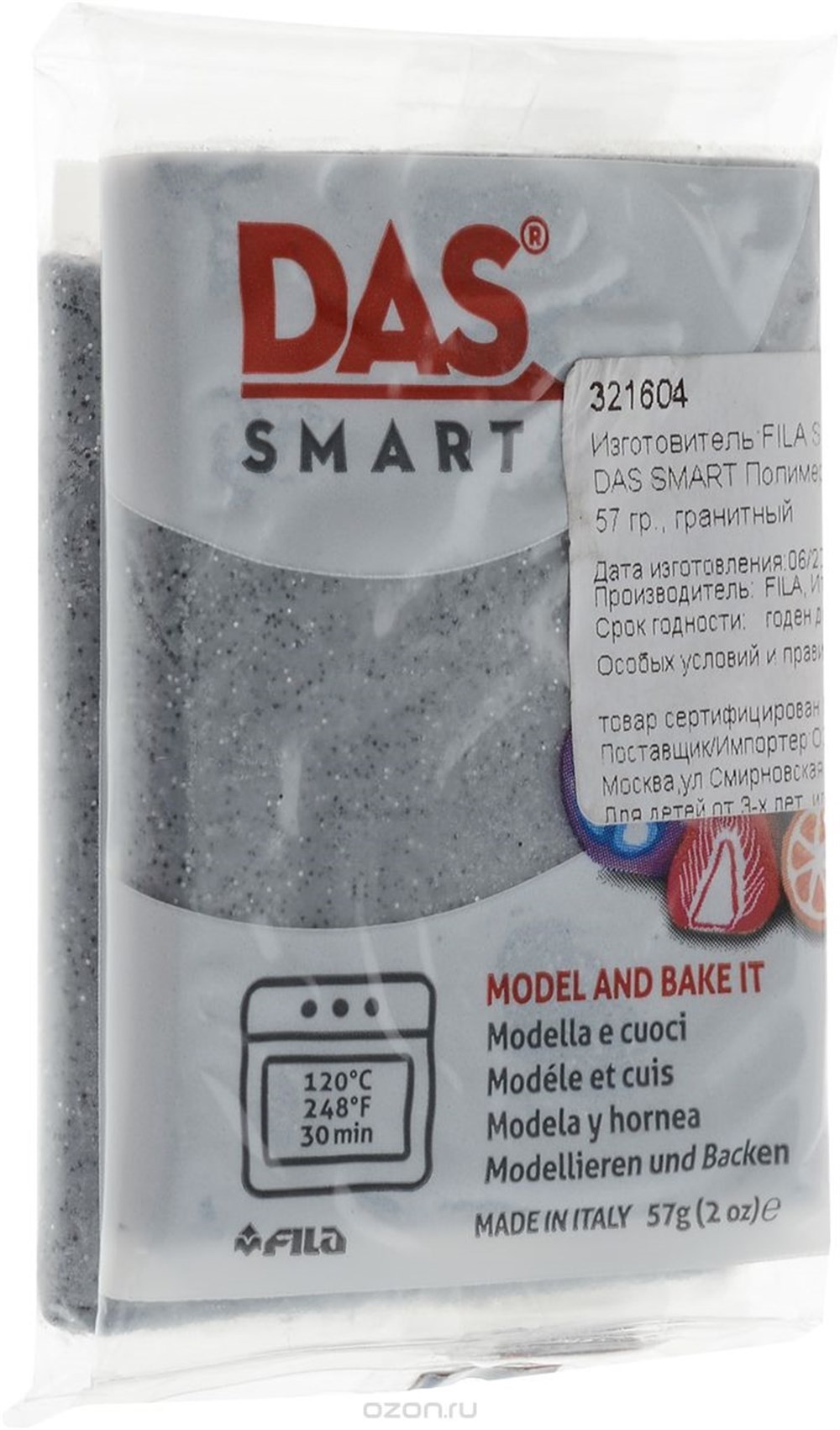 Das Smart is a new polymer, oven-hardening clay. Easy to manipulate, with a compact and versatile structure, it is ideal for precision modeling. Due to its excellent plasticity, it remains unvaried and compact before and after baking. All colors can be molded and combined. Das Smart is easy to bake in a standard kitchen oven at 130 degrees F for up to 30 minutes. Objects can be cooked several times to add new details and layers. Made in Italy, it is gluten-free and contains no animal-derived ingredients.