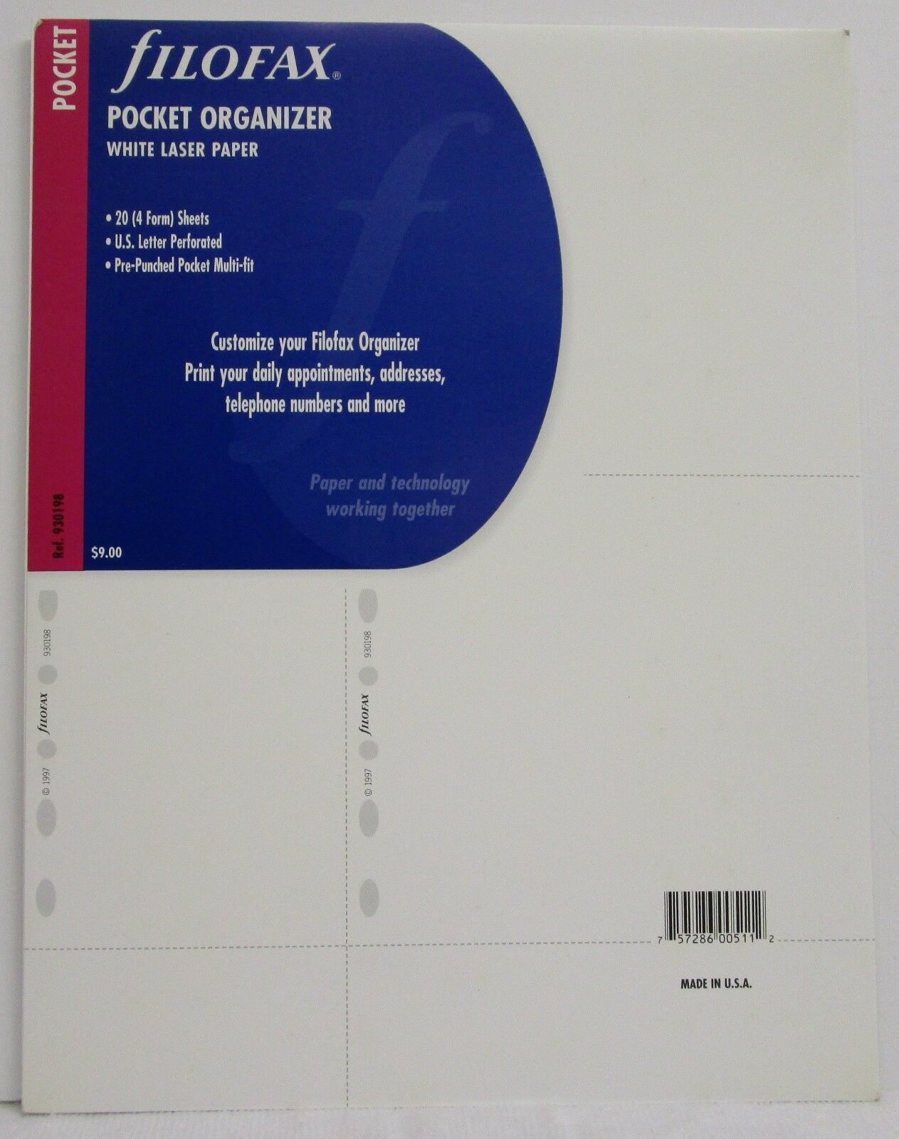 FILOFAX – POCKET ORGANIZER LASER PAPER
