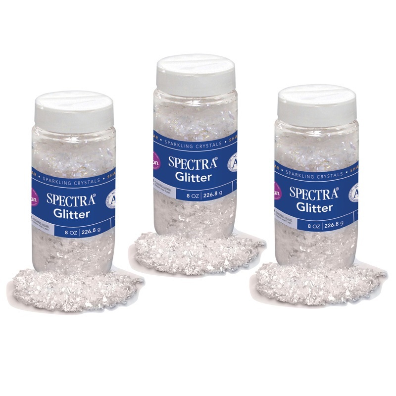 All that glitters is gold…and red, silver, iridescent and a variety of other colors too! Spectra® Glitter Sparkling Crystals are high-quality and are the perfect addition to any art project. To help satisfy a child’s innate preference for things that shine, our 0.04″ hexagon-shaped plastic glitter crystals are non-toxic and conform to ASTM D-4236. They’re packaged in convenient plastic dispensing jars with a variety of slot openings, making it easy to use without a lot of mess!