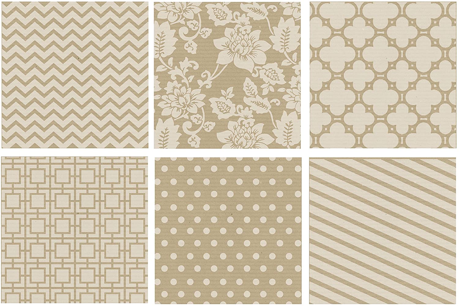 Kraft and White Wrapping Paper Set (6 Rolls) – Each wrapping paper set contains six rolls of different designs and is shrink wrapped together with a branded footer and cap, and each roll of wrapping paper within the set is also shrink wrapped individually. Packaged to sell as sets of six rolls or can be broken up and sold as individual rolls.